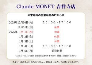 【クロード・モネ吉祥寺店】年末年始営業のお知らせ