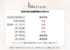 【コム・マティス】年末年始営業のお知らせ