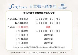 【シルクハウス日本橋三越本店】年末年始営業のお知らせ