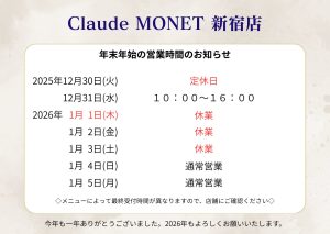 【クロード・モネ新宿店】年末年始営業のお知らせ